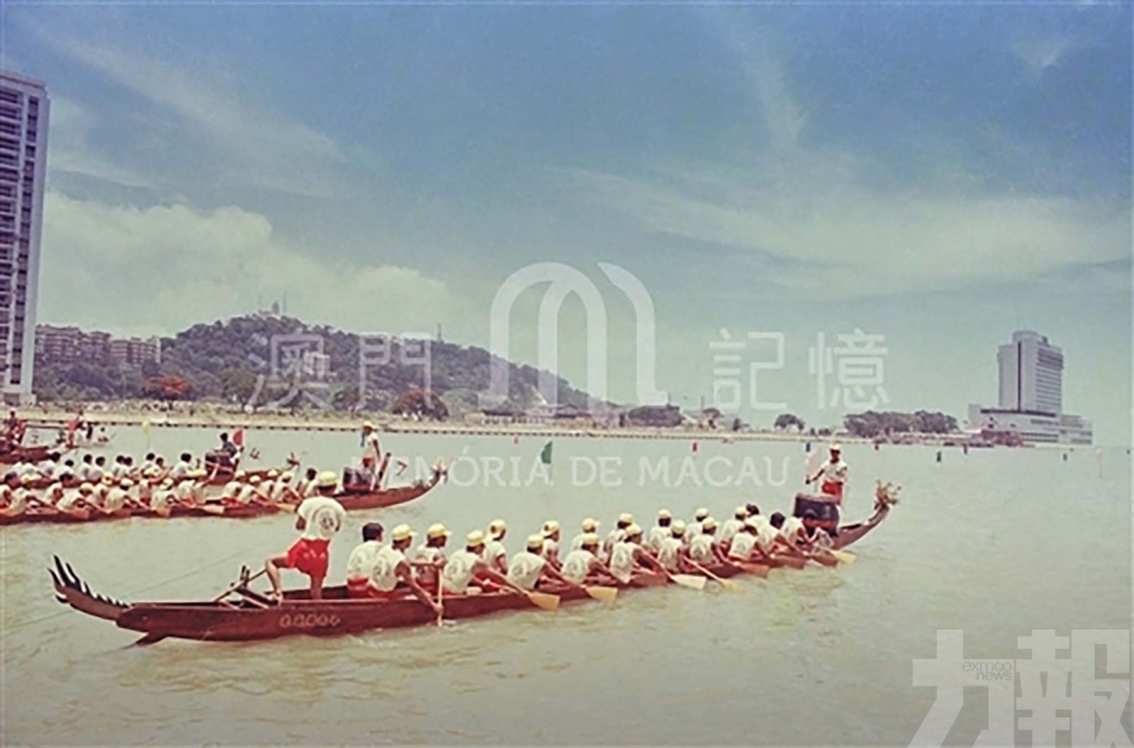 1986年在澳門舉行的龍舟賽。(張耀棠攝,澳門攝影學會提供,摘自「 澳門記憶 」文史網)
