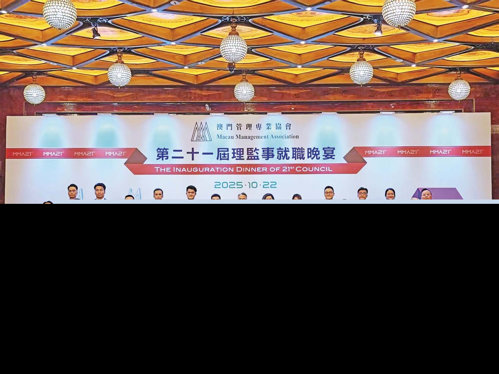 澳門管理專業協會10月22日晚舉行第21屆理監事就職晚宴,出席者眾,場面熱鬧。該會表示,將一如既往地與特區政府及企業密切合作,提供全方位的教育支援,推動更多專業資格認證,務求滿足社會各界對管理專業人才的需求,並加強與粵港澳大灣區的交流合作,助力澳門融入國家發展大局。