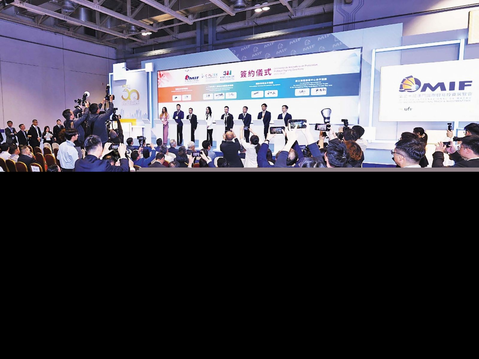 「第二屆中國—葡語國家經貿博覽會(澳門)」、「第三十屆澳門國際貿易投資展覽會」及「澳門國際品牌連鎖加盟展2025」(下稱「三展」)聚焦首發經濟、中醫藥產業、農業產業鏈、跨境電商、餐飲連鎖、IP合作及經貿等領域,在四天會期將舉辦9場專題配對洽談。截至展期第二天中午,已舉辦的5場專題配對洽談已促成270多場商業配對,並達成逾90份簽約,其中近兩成的合約與葡語國家相關。