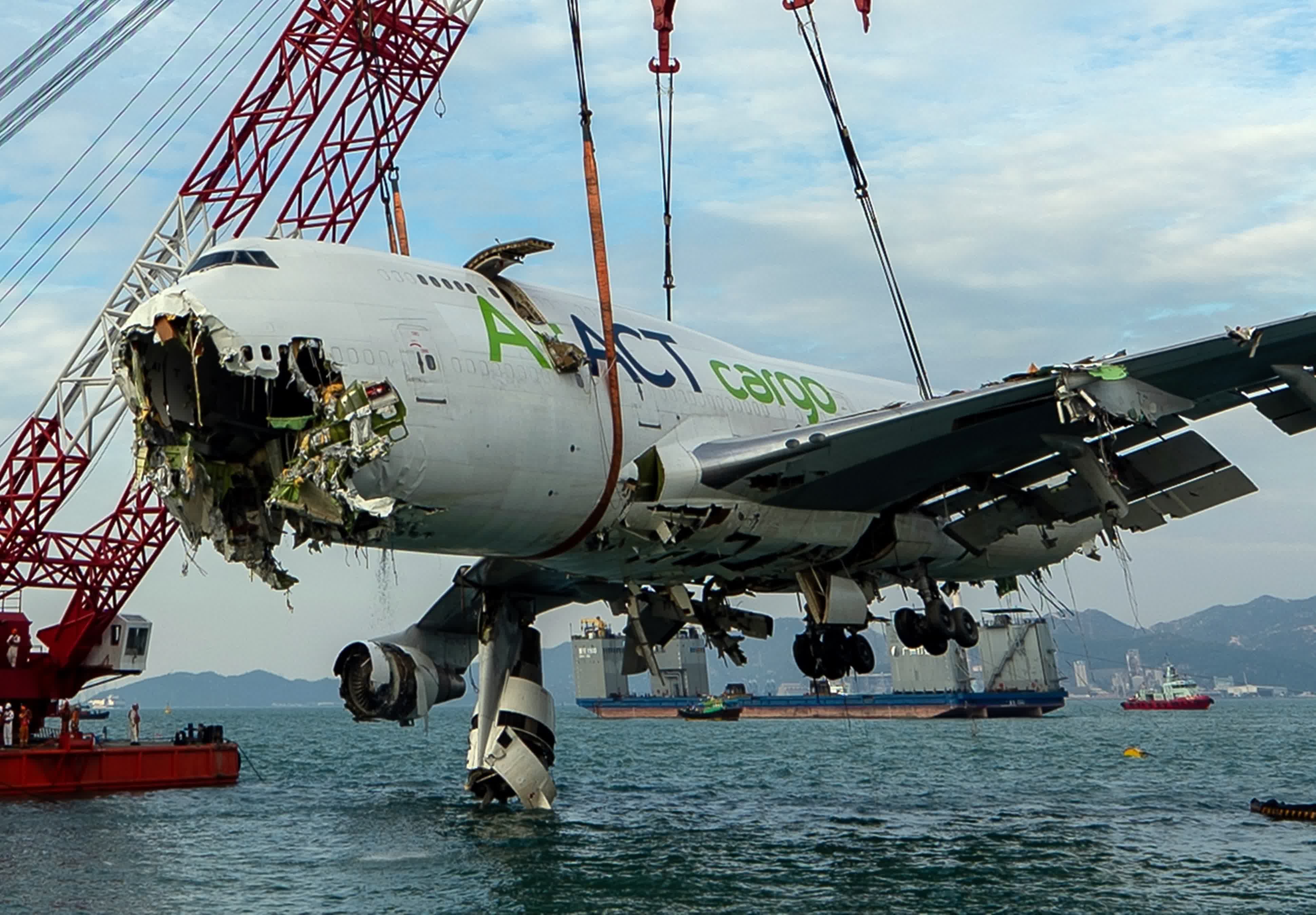 機場貨機墮海|打撈殘骸第四日 準備吊起最大件的機身連機頭