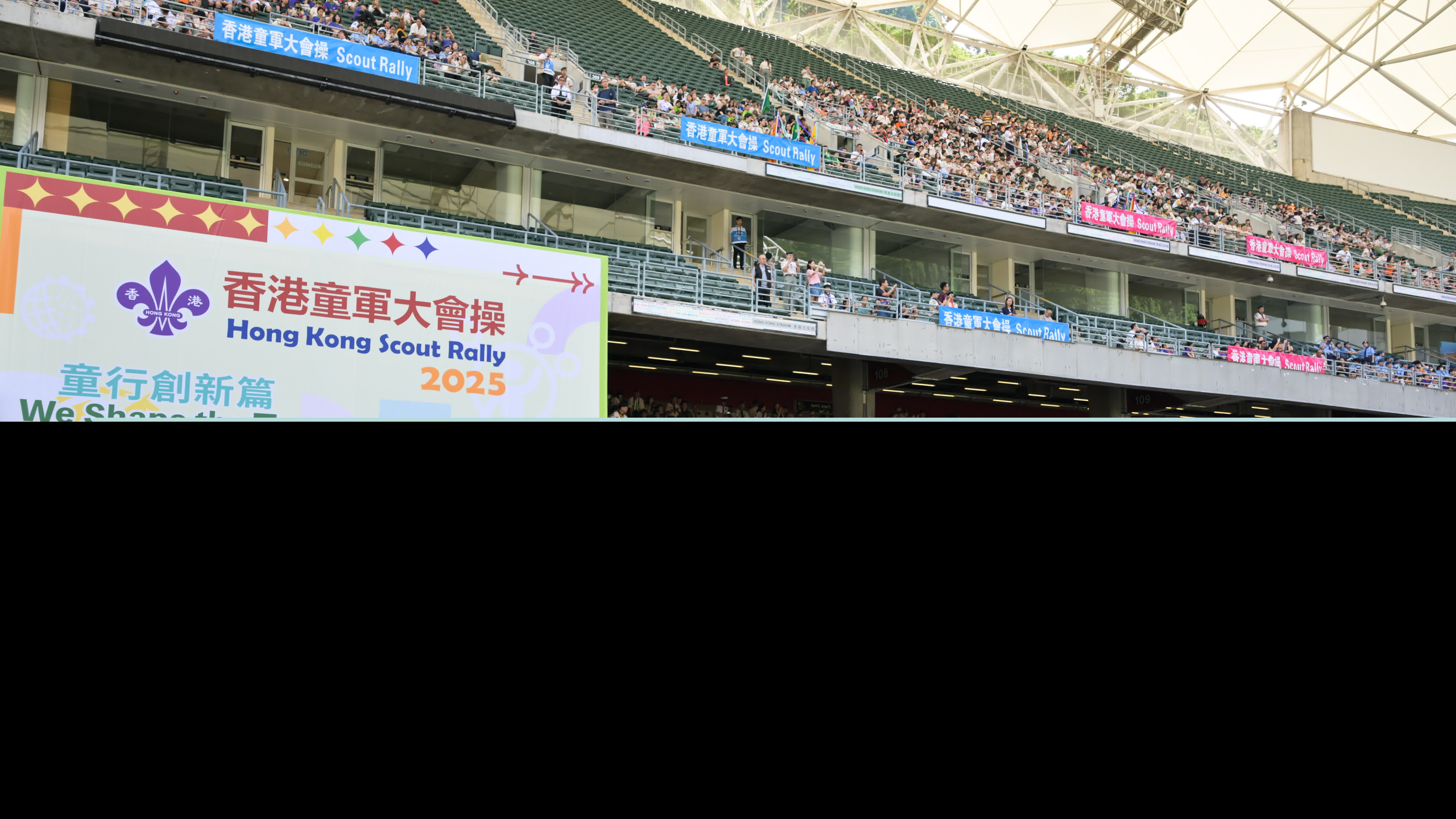 行政長官李家超今早(26日)在香港大球場舉行的香港童軍大會操2025致辭,呼籲踴躍參與選舉,履行公民責任,履行社會責任,投下神聖一票,選出賢能立法會議員。(政府新聞處圖片)