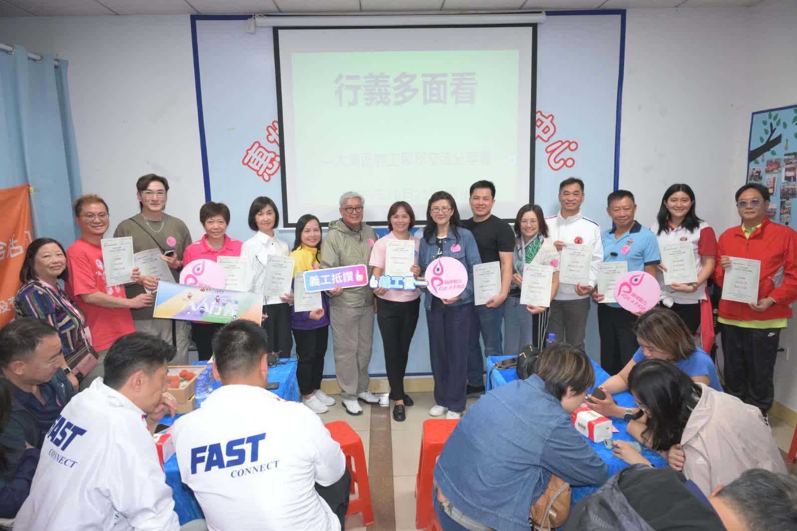 辛勤服務一天後,晚上迎來輕鬆時刻!韻律動力基金特設義工聯歡晚會,邀請人氣義工歌手胡渭康、顏志恒和劉威煌及藝人何啟南現身,與大家唱歌聊天,以音樂感謝每位義工的付出與愛心。