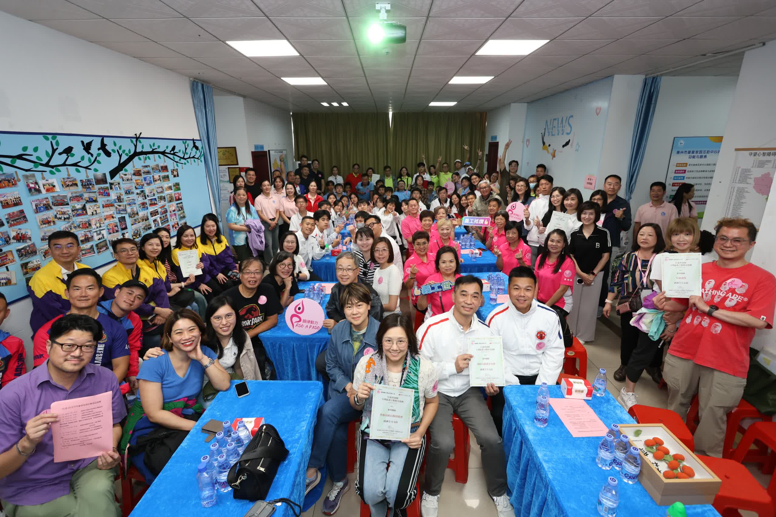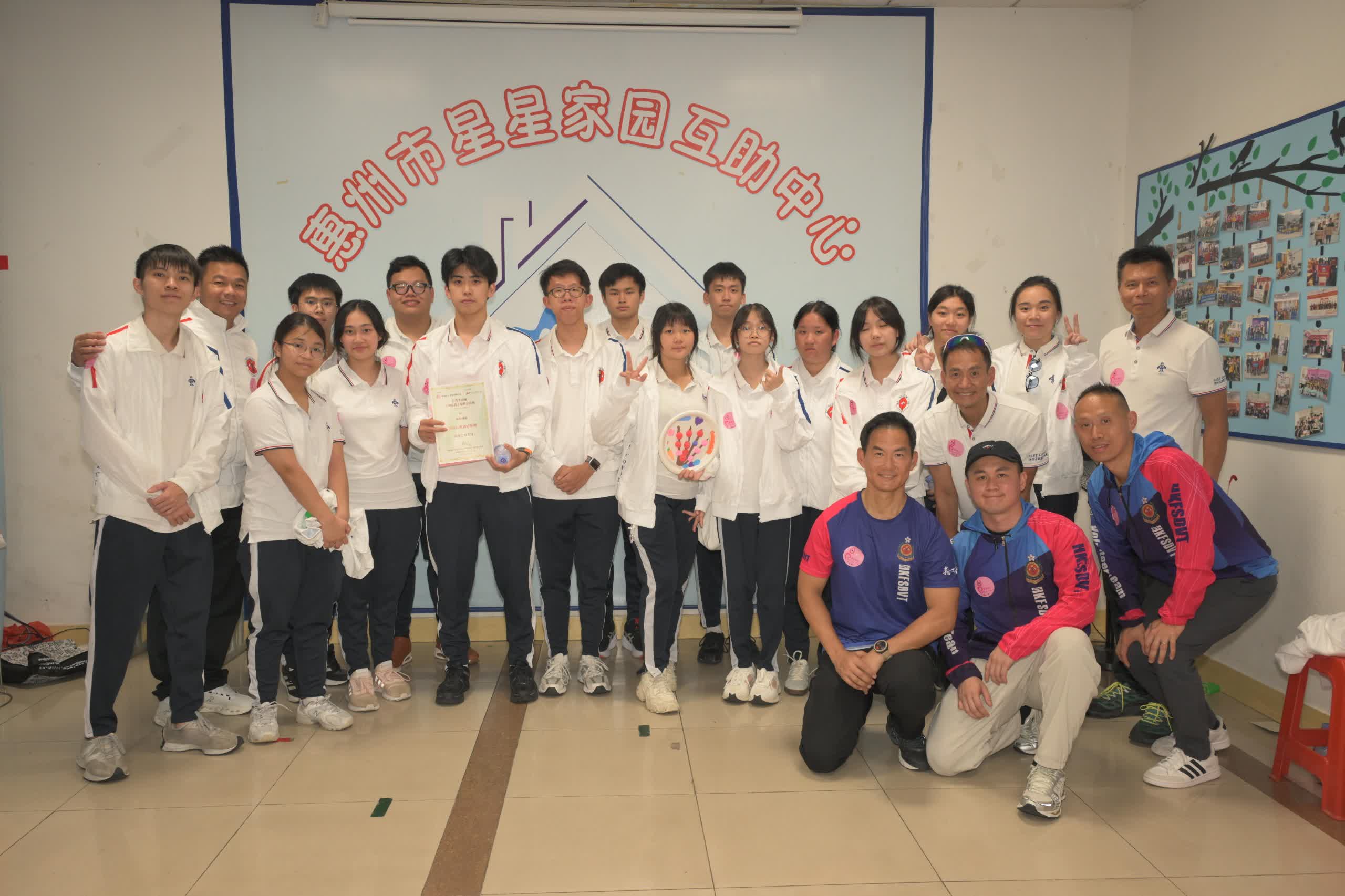 今次得到惠州市委社會工作部的牽線,安排探訪「星星家園」。「星星家園」成立於1995年,創辦人萬老師分享,機構由最初5個家庭發展至如今服務800個家庭,一直以「有錢出錢、有力出力」的互助模式運作。義工透過座談、互動遊戲及手工藝活動,與孩子建立真摯聯繫。現場笑聲洋溢,不少義工感慨:「原來陪伴,就是最好的禮物。」活動不僅讓孩子感受社會溫暖,也讓香港義工更了解內地特殊教育發展,開拓未來合作空間。非洲鼓環節更由藝人義工帶領,氣氛熱烈。