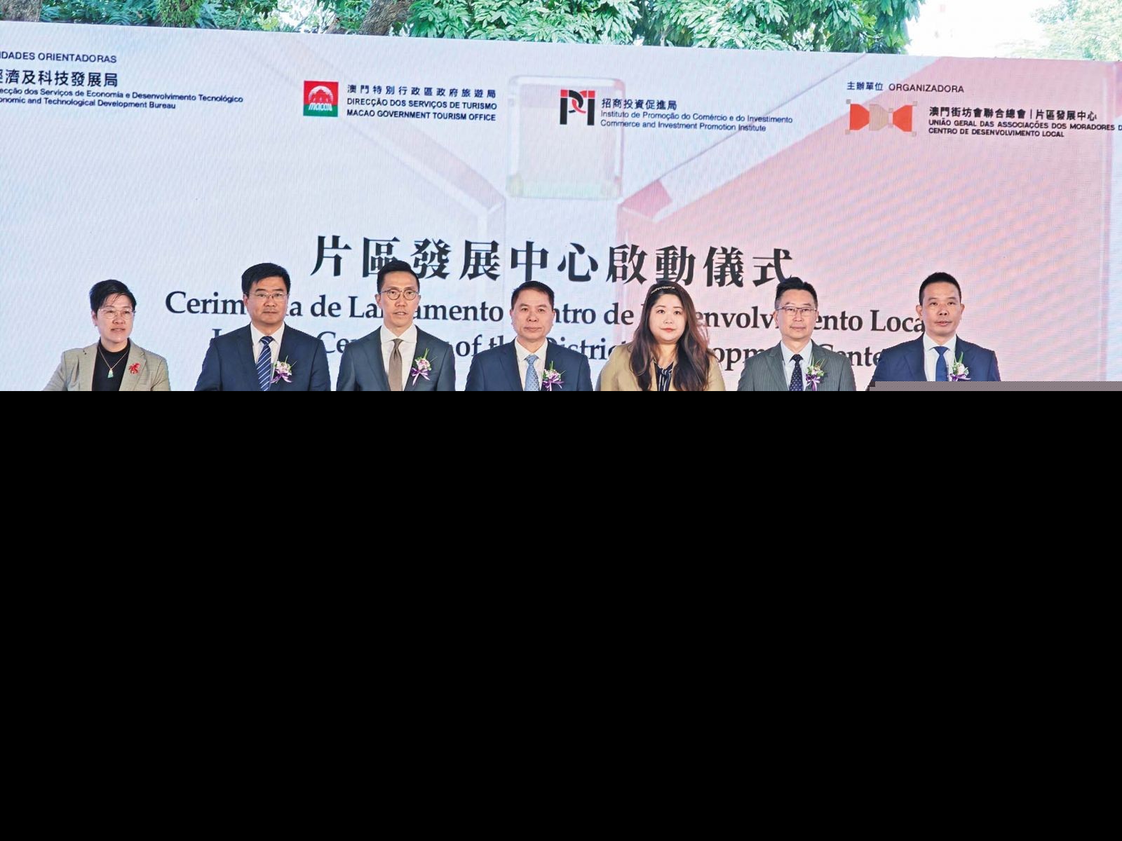 片區發展中心啟動儀式昨日在媽閣塘片區大鐵棚舉行。據介紹,片區發展中心設有指導委員會及顧問團,分別具有審議及諮詢功能。指導委員會由14位來自政府、社團及工商界的代表組成,負責對片區發展項目進行審議和指導。顧問團則由18位來自休企、工商界、旅遊界、文化及傳播界、城巿規劃及學術界的代表組成,為片區發展提供專業建議和技術支持。