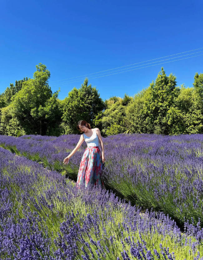 唐艺昕薰衣草花海悠闲漫步!绽放灿烂笑容心情大好
