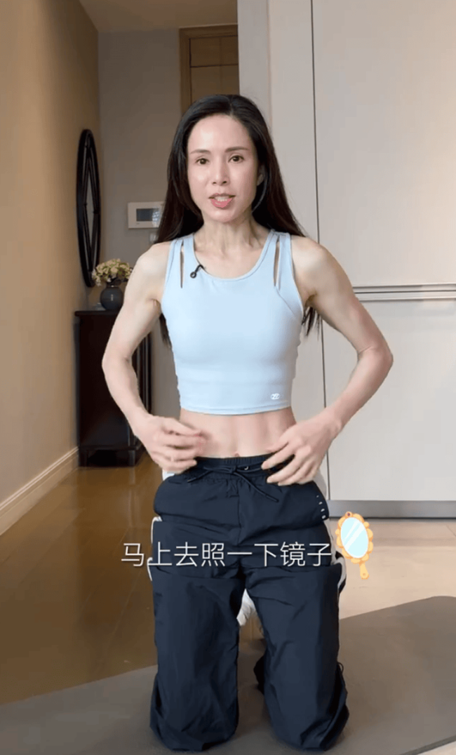李若彤分享居家练马甲线方法!穿超短背心秀好身材