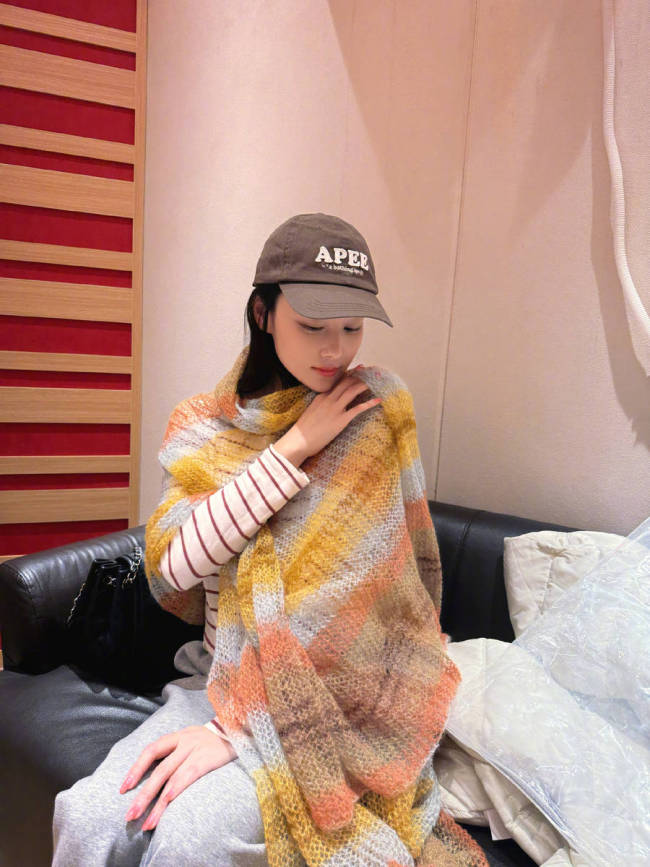 张馨予系上妈妈亲手织的围巾拍照!笑容满面好幸福