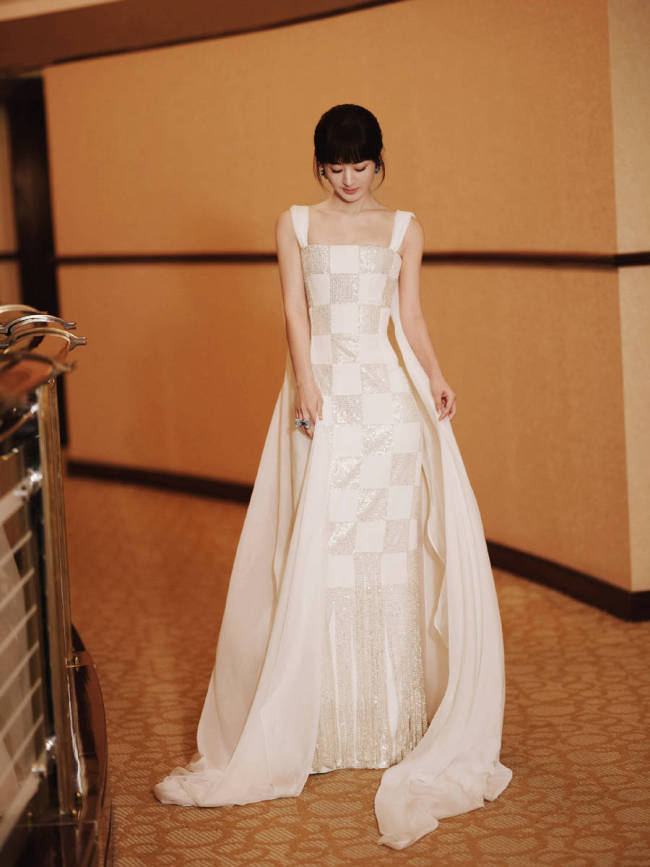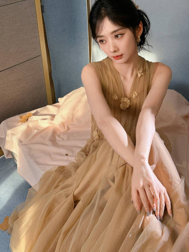 赵丽颖穿流苏裙气质优雅迷人!梳齐刘海发型超可爱