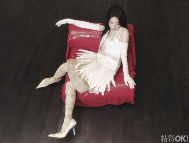 杨幂穿红裙拍摄写真 暗红丝绒浓烈也慵懒